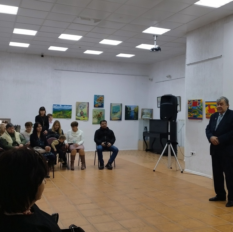 А.Т. Покатило рассказал участникам мероприятия, что Народная студия живописи и графики «Арт-Колор» берет свое начало в 1992 году, когда на базе Образцовой детской студии изобразительного искусства Дворца культуры им. Ю.А. Гагарина под его руководством начали работать курсы рисунка и живописи.