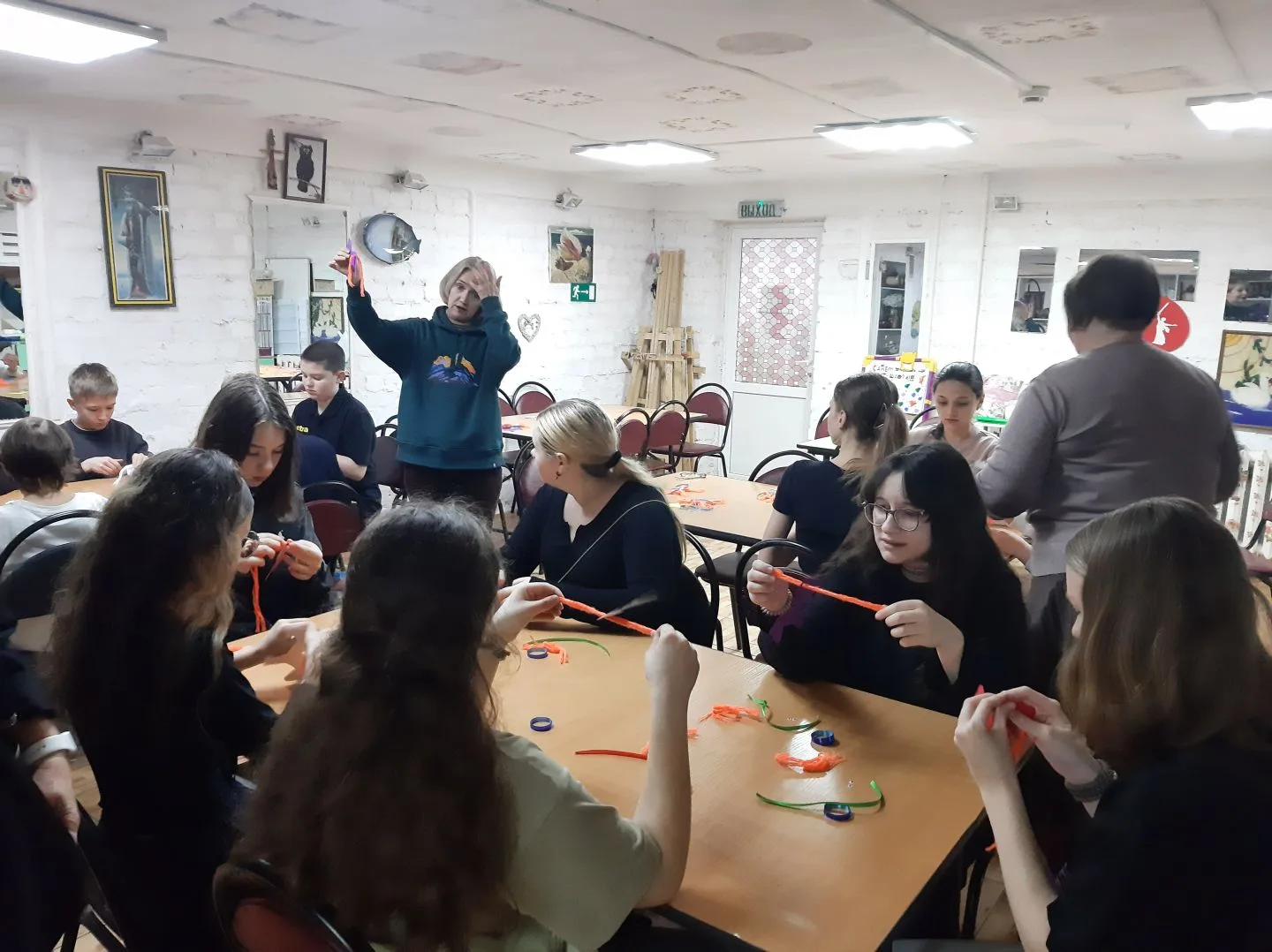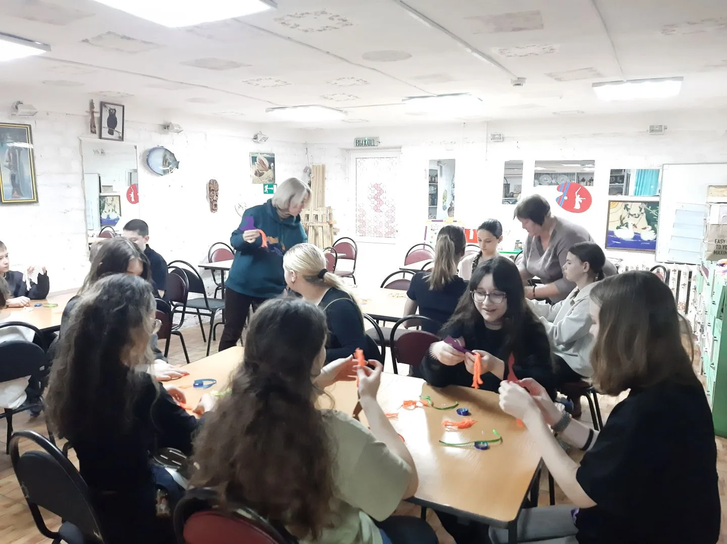 Музейщики, повидавшие за годы работы многое, были готовы к любому развитию событий. Если мастер-класс и игровая часть пребывания детворы в МВЦ не вызывали тревоги за успешный исход, то проведение экскурсии по выставке художника-дизайнера Ольги Турчановой «Взмахни крылами, жизнь!» было «слабым звеном». Обычно современные дети на этом этапе посещения музея либо максимально погружаются в свои «сотики»-гаджеты, либо начинают отчаянно зевать и демонстративно не участвовать в экскурсии, а то и немножко хулиганить. Вот где экскурсоводу требуется умение «держать удар» и способ заставить-таки этих «нехочух» участвовать в экскурсии. Знаете, что может помочь? Викторина, то есть вопросы гида и ответы детей с поощрением за правильный или интересный ответ в виде сувениров – безделушек, чупа-чупсов или чего-то подобного. Тут не важна ценность приза, а сам факт его получения, то, что мальчишка или девчонка в чём-то оказался впереди одноклассников.