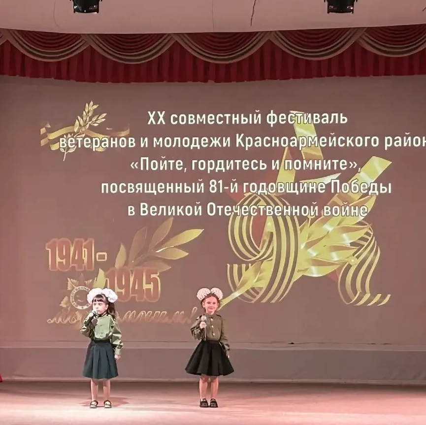 11 апреля в МЦД «Ровесник» состоялся XIX Фестиваль творчества ветеранов, детей и молодёжи Красноармейского района Волгограда под названием «Пойте, гордитесь и помните!». Мероприятие было посвящено сохранению исторической памяти и укреплению связи между поколениями. В нем приняли участие как творческие коллективы, так и сольные исполнители.