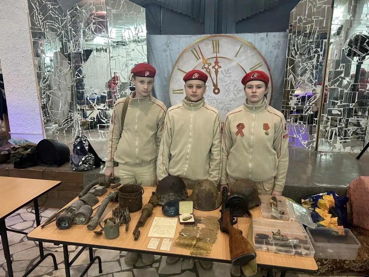 Уже у входа гостей мероприятия приветливо встречали ребята-юнармейцы, а в фойе была организована интерактивная выставка от поискового отряда «Курган».